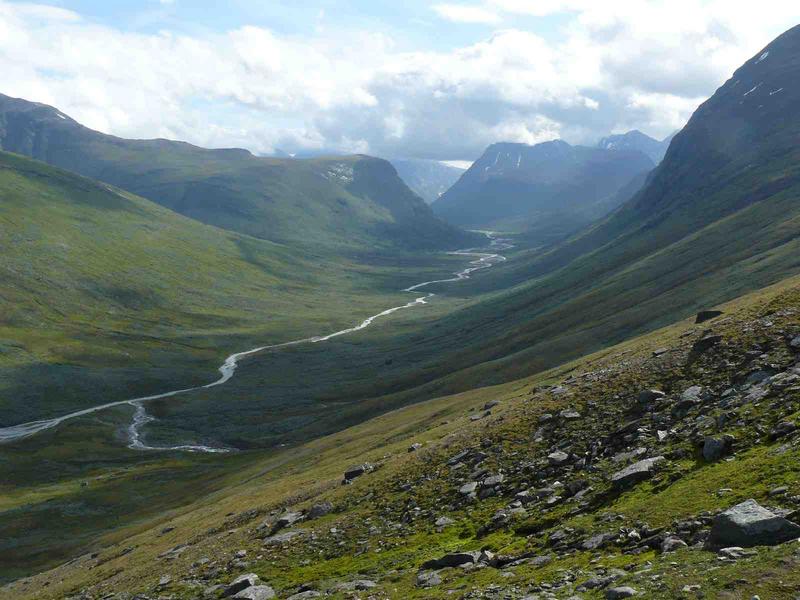 När man tar sig upp till Luohttolahko syns nedersta Sarvesvágge i vackert perspektiv. 31 juli 09