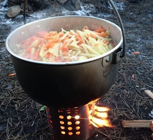 Det är perfekt att förbereda ingredienserna hemma (skala och skära i bitar). Torkar du ingredienserna kan du laga soppan på vandringsturer när du inte vill bära så tungt.
