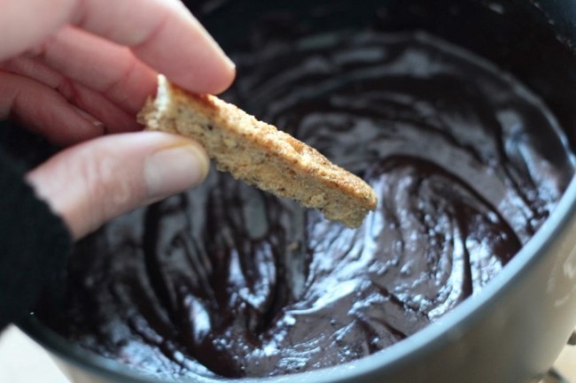 - Doppa kex i den smälta chokladen