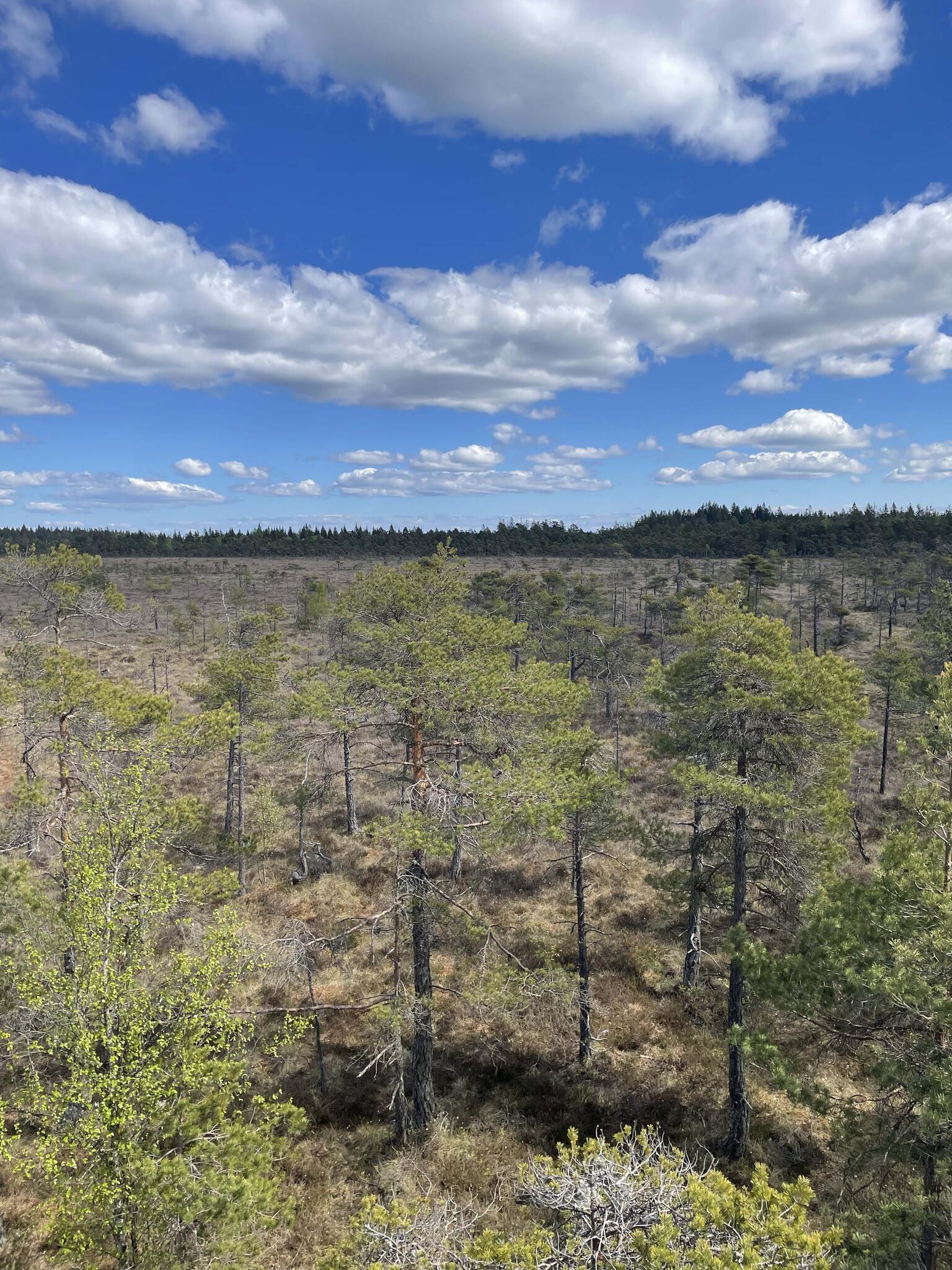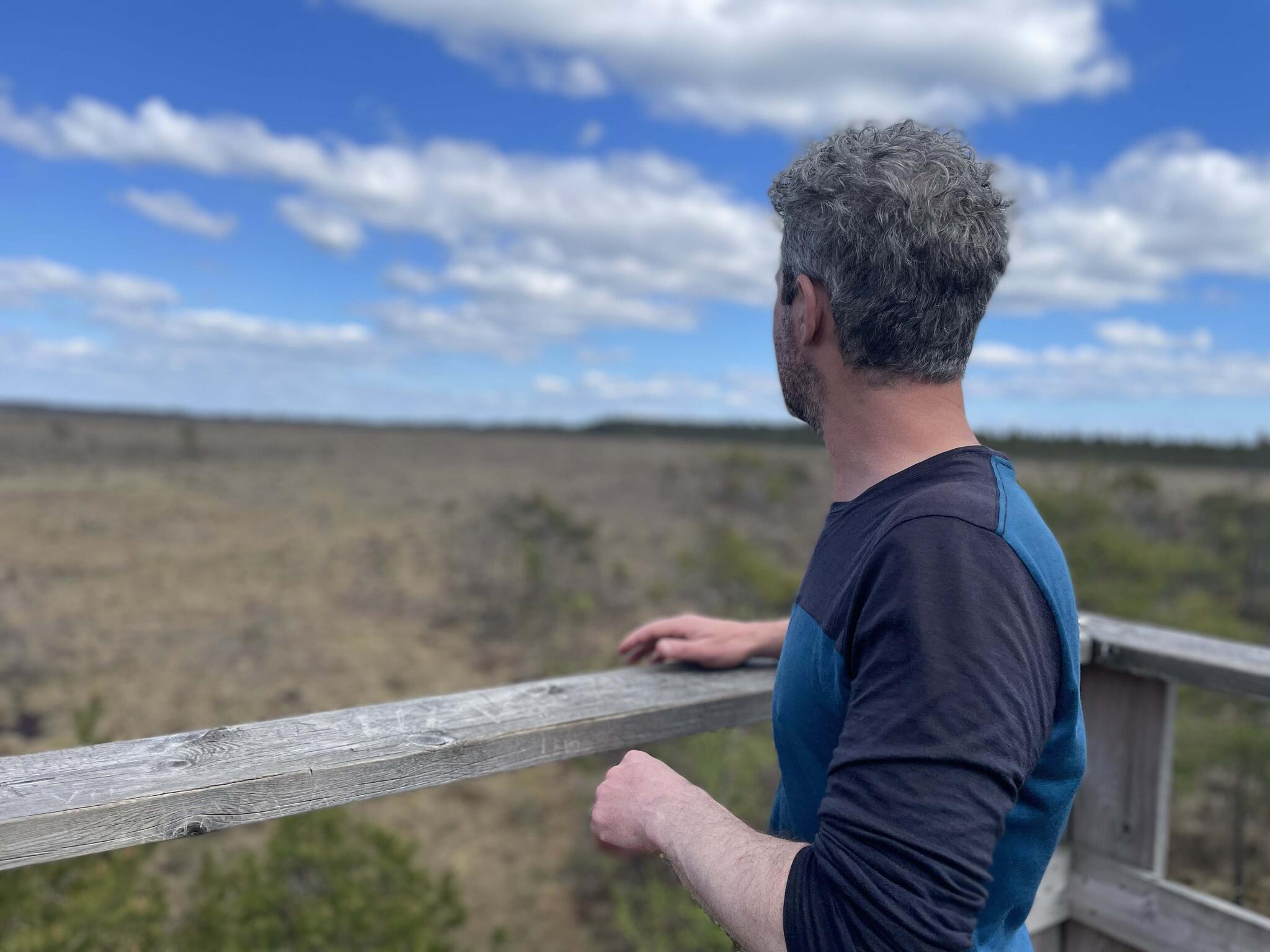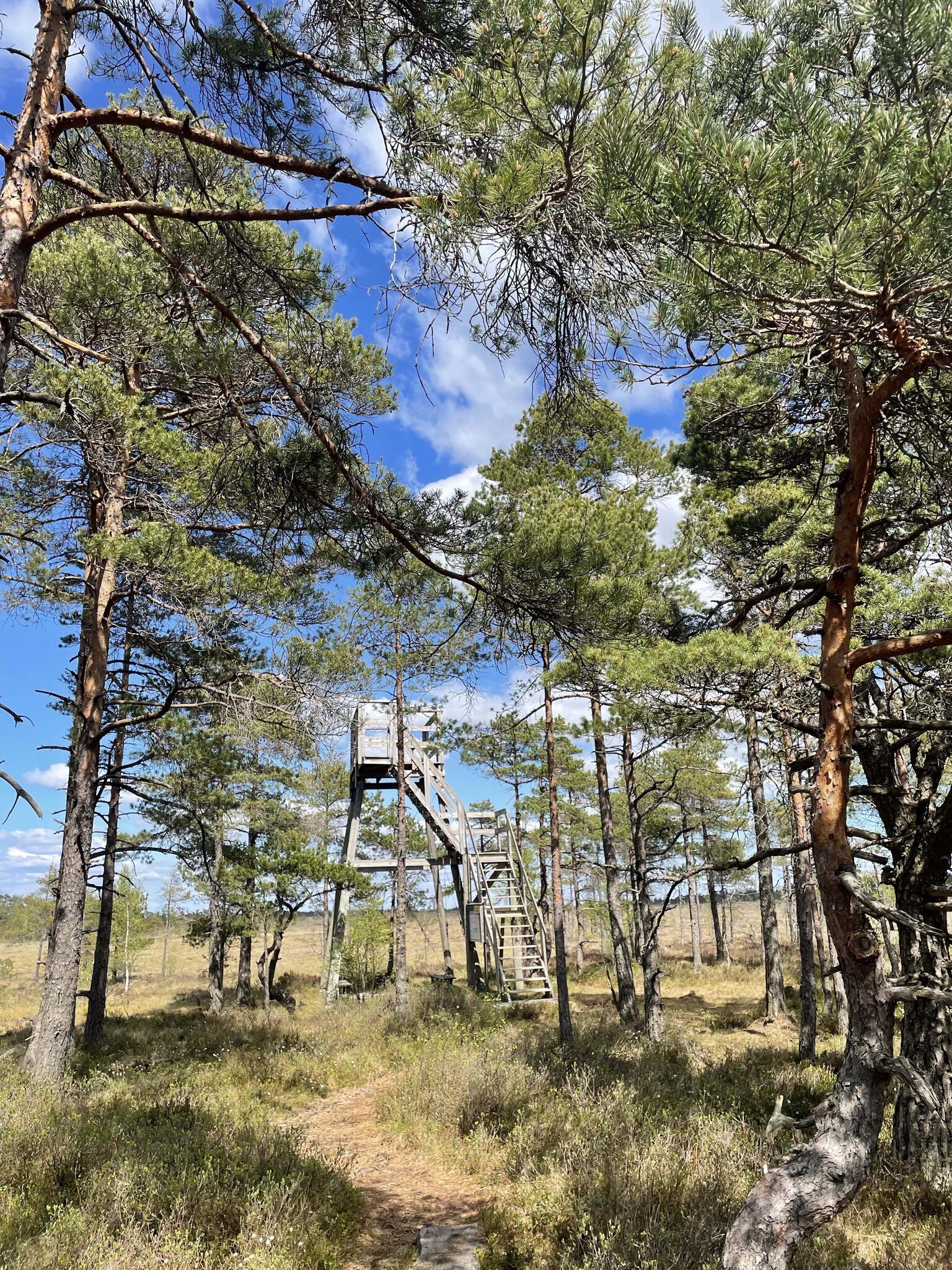 Det var också Jessica som erbjöd sig att köra mig till Silverfallet på andra sidan Billingen. Vi åkte genom ett landskap av småvägar, gårdar och skogsdungar. Vid Blängsmossen stannade vi kort till, klättrade upp i det rangliga fågeltornet och såg ut över myren. Vidsträckt, tyst – nästan mer som fjällen än Västergötland.