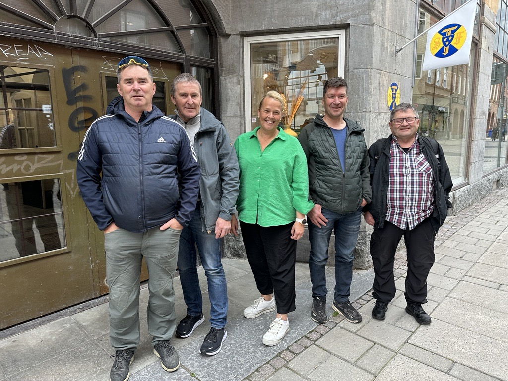 Nicklas Johansson, Tåssåsens sameby, Per Fjellgren, Mittådalens sameby, Maria Ros Hjelm, generalsekreterare STF, Jonas Kråik, Handölsdalens sameby och Reidar Nordfjell, Handölsdalens sameby. Foto: STF