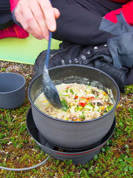Detta är en friluftsanpassad variant av den Thailändska klassikern Paneng Gai. Maträtten är kryddstark och värmer skönt en kylig kväll i fjällen.