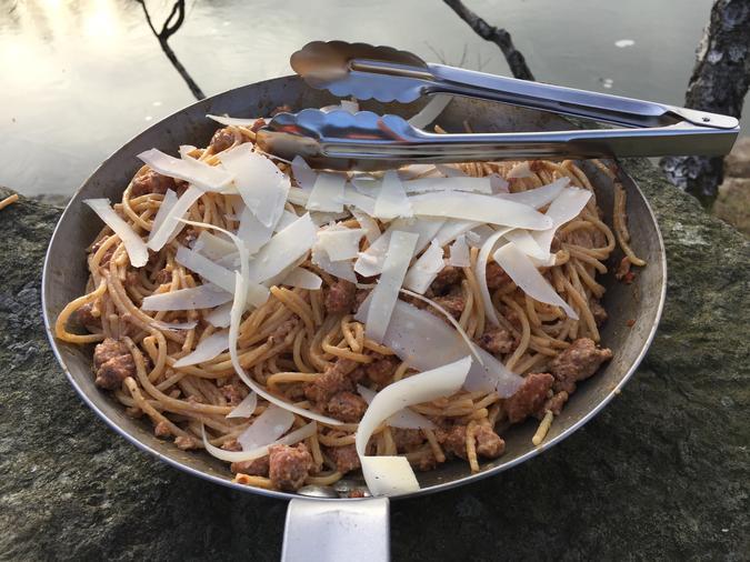 1). Koka spagetti (görs hemifrån om man önskar snabblagat på utflykten).