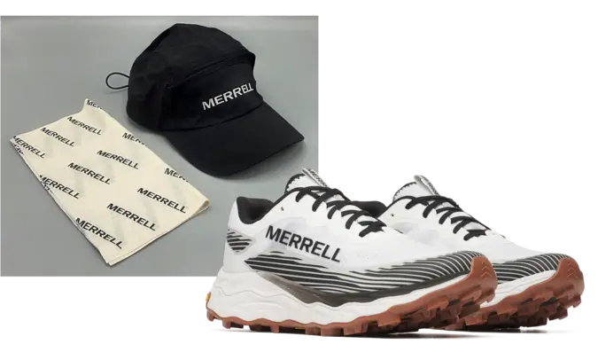 Merrell är tävlingens huvudsponsor och utöver startplatser till valfritt lopp får dessutom vinnaren två vinstpaket med Merrells nya terränglöpsko Agility Peak 6 som är perfekt att springa loppet i, en trail-keps och en buff med Merrell-logotypen – ett paket åt sig själv och ett åt springkompisen.