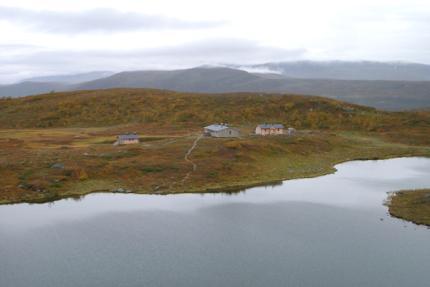 Kl 18.30 är vi framme vid Aigertstugan som numera är flera stugor med bastu, vedbo, utedass och två sovstugor. Stugorna ligger fint till vid den lilla sjön Ruoutejauretje med sitt klara vatten. Utanför den mindre sovstugan står stugvärden med sin lille son (1år och 4 månader) och hälsar oss välkommen. Den mindre stugan har två sovrum som är tänkt för länsstyrelsens personal och samerna i området, den är också öppen för övernattningar i nödfall även utanför sommar och vinter säsongen, när det inte finns någon stugvärd på plats. Den större stugan har flera sovsalar från 4 bädds rum till 10 bädds rum. Utedasset som ligger en liten bit från stugorna är byggt ovanpå en stor grop som är utgrävt i marken, när gropen är fylld flyttar man dasset till en ny grop eftersom det tar tid för naturen att ta hand om skiten, och det skulle bli en stor apparat att transportera det till bebyggda trakter. Efter en stunds pratande söker vi upp en plats att slå upp tältet på.