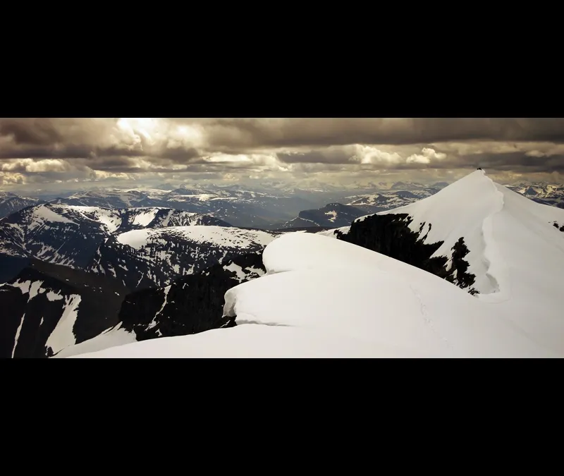 Sydtoppen sedd från strax innan Nordtoppen. Bilden är något behandlad i Photoshop. (Nyanser justerade och molntäcket framhävt.)