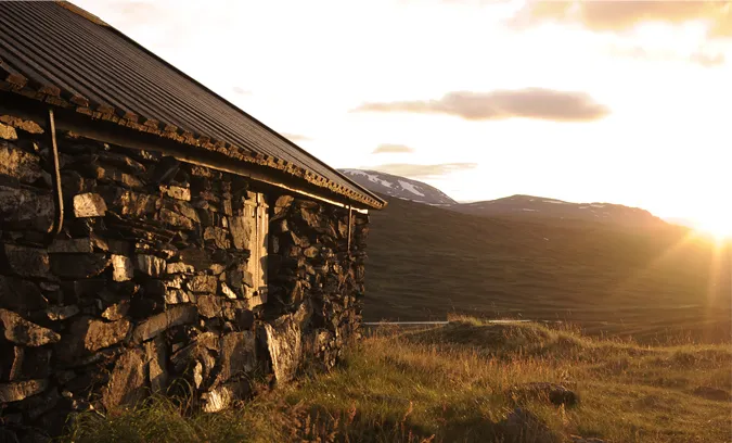 En ljummen ljus sommarkväll vid kapellet vid Alkajaure i Sarek. En perfekt plats för att avsluta en dagsetapp, särskilt när vädergudarna är på ens sida.