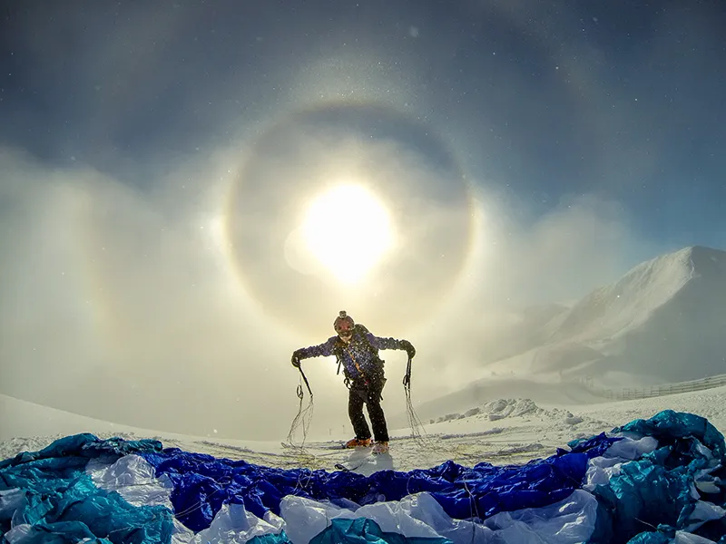Helt makalös halo den 1 December 2012. Jag och min kompis Hannes hajkade upp med toringskidor och flög ner.