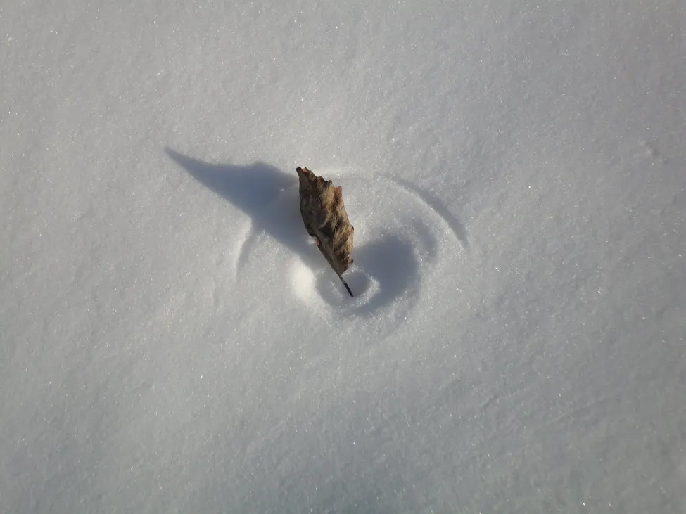 Ett asplöv i snön, inga konstigheter.