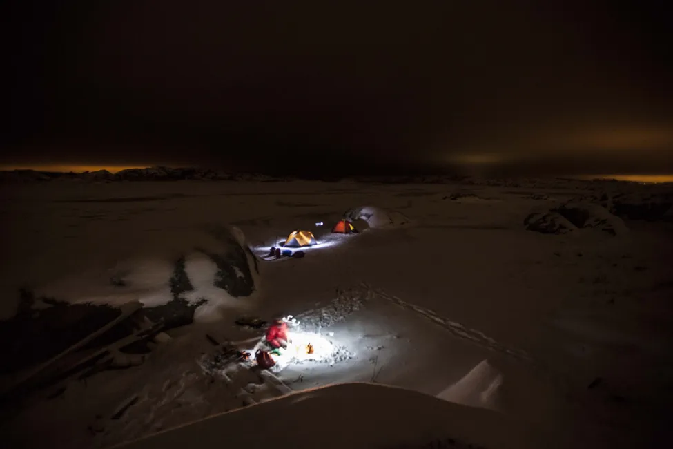 Efter jobbet på fredagen gav sig jag och några vänner ut på en övernattningstur på Ryskärsfjorden norr om Göteborg. Vi slog upp våra tält på första bästa ö och gjorde upp eld och grillade korv. Skärgården är väldigt fridfull och öde så här års. När vi stod vid brasan i skymningen och tittade ut över havsisen var det väldigt lätt att drömma sig bort och fantisera om isbjörnar och öde polartrakter fast vi i själva verket befann oss endast 2,26 mil från Göteborgs centrum. Ett riktigt vardagsävntyer när det är som bäst.