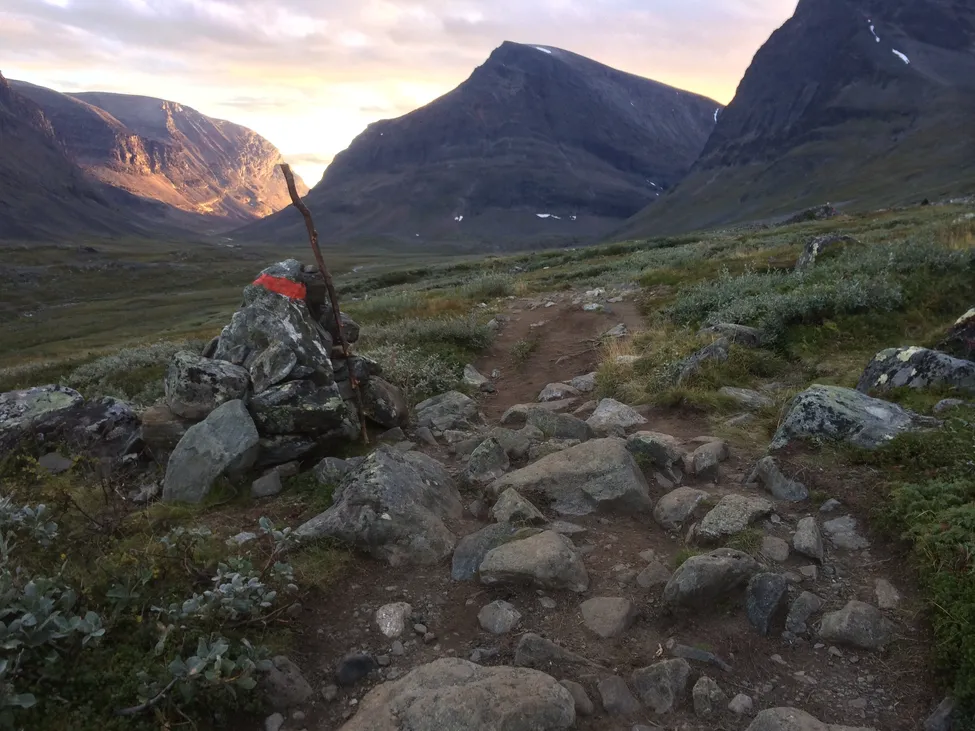 Lämnad vandringskäpp på stigen mot Kebnekaise