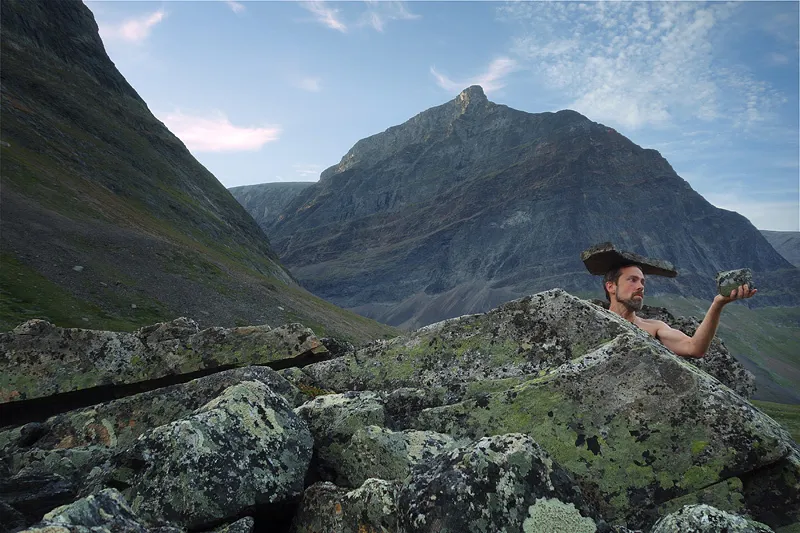 Sanslöst vad tungt det är med sten på huvudet! Och så ont det gör! Men så blir det när man har kul med allt folk på Fjällräven Classic. Kameran stod på en sten.
