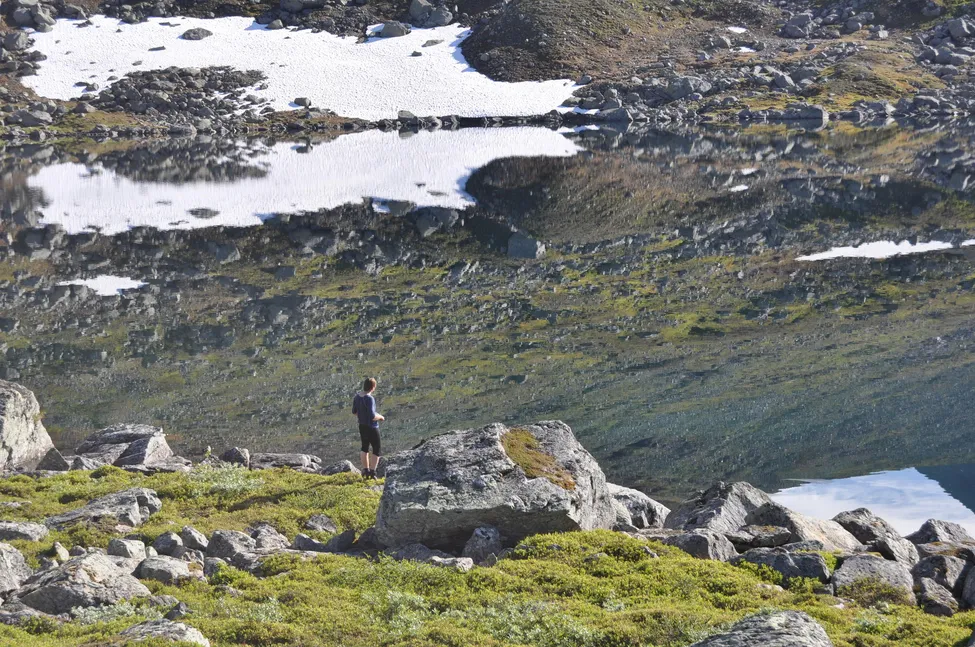 Speglingarna får sjön att nästan se ut som en ravin. Att det överhuvudtaget är en sjö är svårt att se