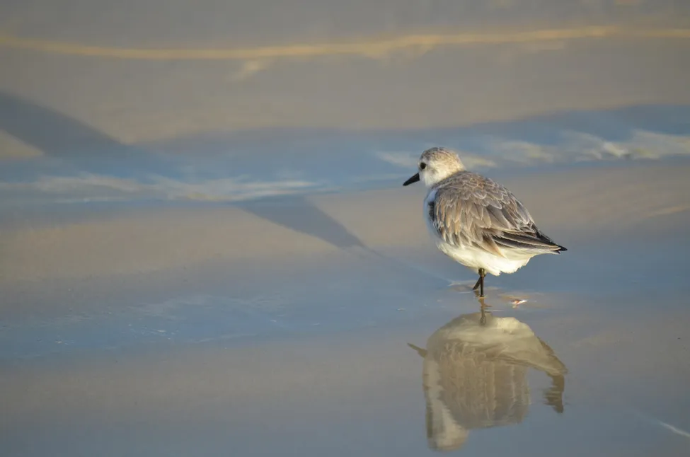 En ensam vadare promenerar i kvällssolen.