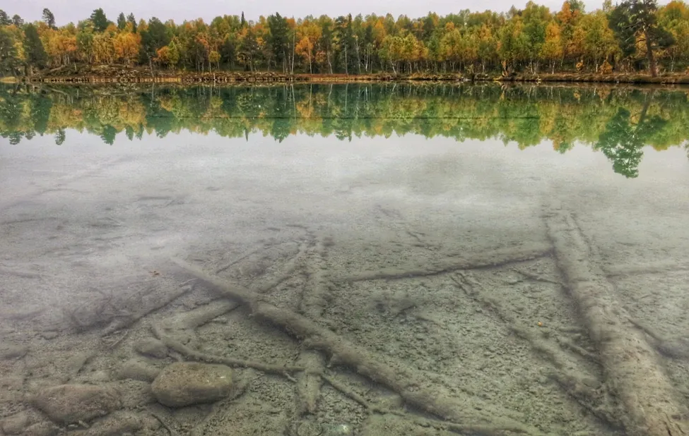 Höst i fjällen där vattenytan ömsom speglar och bryter ljuset.