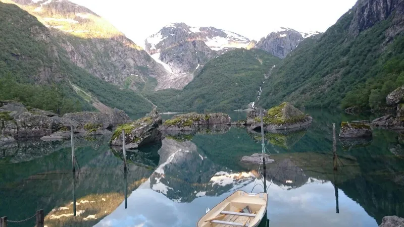 Glaciären Folgefonna rinner ned mot Bondhusvatnet