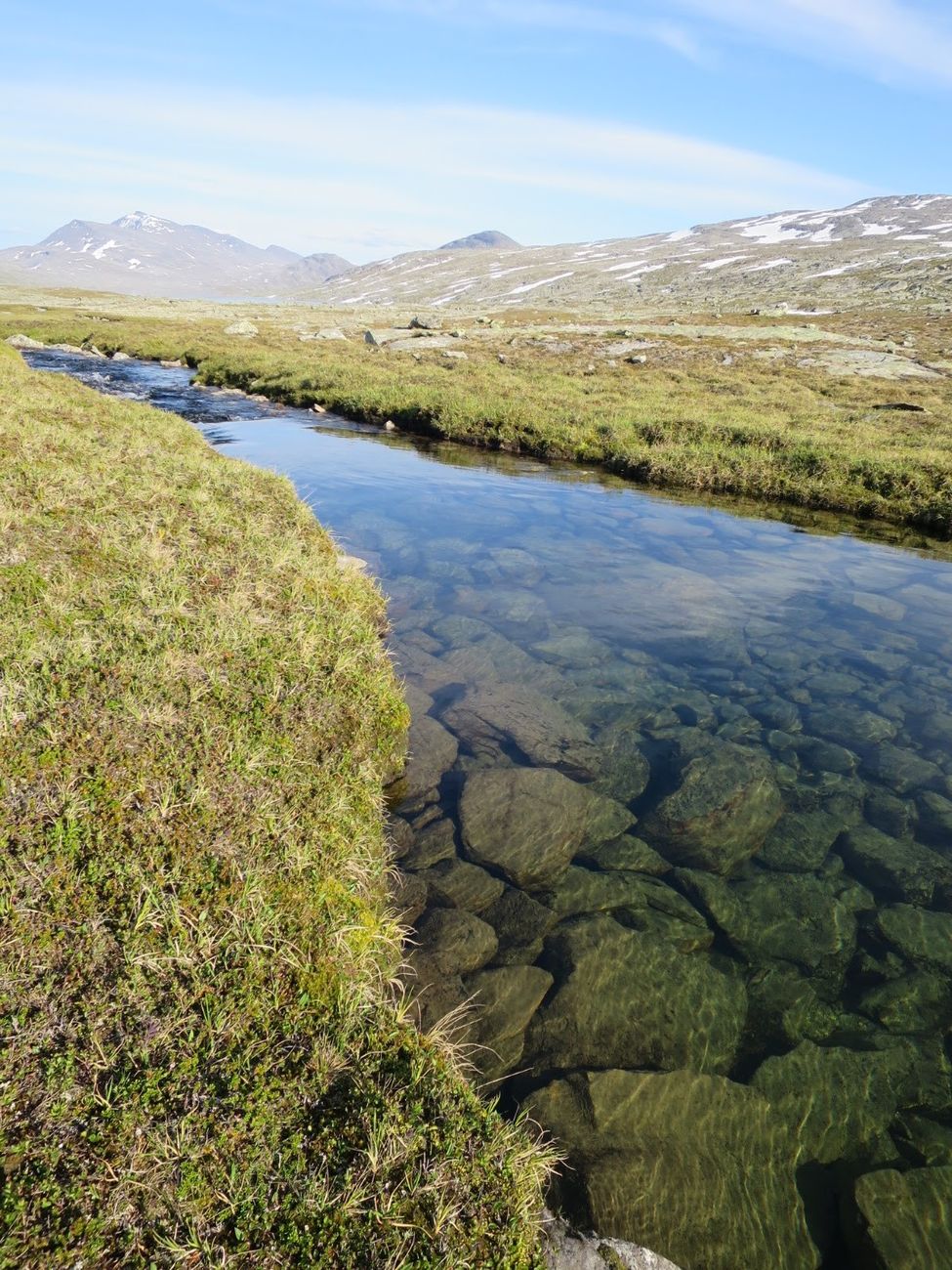Vi var på väg ner mot Kvikkjokk från Sulitielma. Hittade den perfekta tältplatsen vid en av småjokkarna som rinner ner i Vaimoksjön. Fick vandra på snö mestadels pga kallt väder och sen snösmältning.