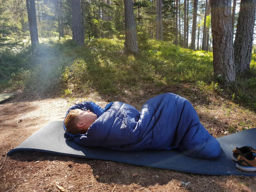 Övernattning med min son som sover som en stock av all friskluft. Var en mygg fri natt runt 12 grader varmt.