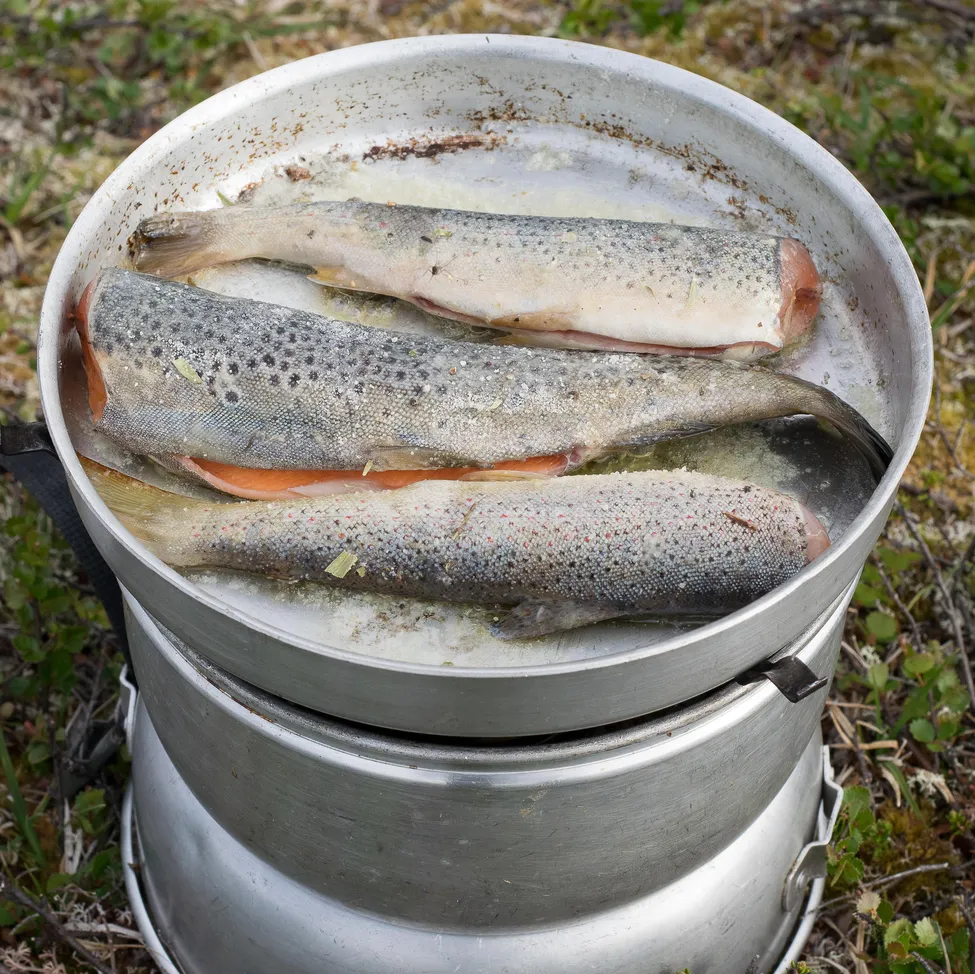 Tre fiskar i pannan och tre fiskare var vi som förväntansfullt slickade oss om munnarna, jag (farfar), son och sonson.