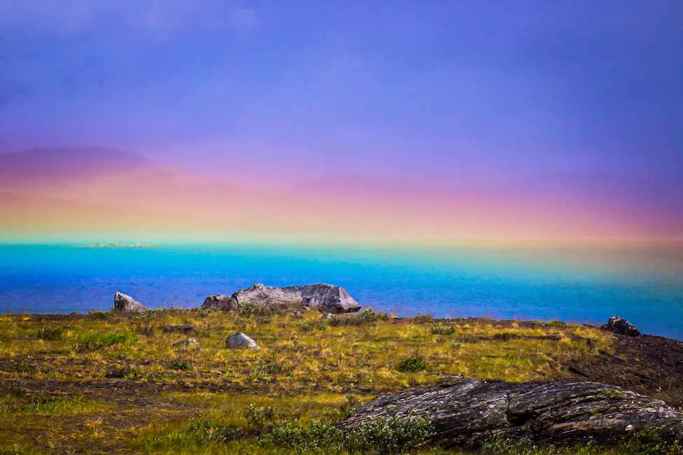 Liggande regnbåge skapar en vacker bakgrund.