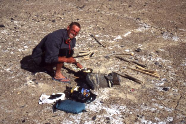 | For 11 years I've been a vegetarian, but when Albert started to stone trout I couldn't resist the temptation. Fried them in the only thing that was available - bike grease. |