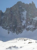 Well allt var inte guld ocH grona skogar pa dagens tur. Misaren borjade efter 30 min. Att skida in till insteget med korta anmarschskidor och vinterklatter skor ar en bra tanke. I Chamonix dar det ar typ 30 min pa hudar till 90 procent av lederna funkar det toppen framforallt eftersom man hinner ner till by pa middag nastan oavsett vad man forutsatter sig. Men pa gardagens approach till insteget var det blodande skavser efter 30 min trotts att jag fortejpat och satt dit compeed. 7 timmar, 14km och 1200 hojdmeter senare blev jag sa dar lagom glad nar min kompis upptacker att han tappat taltet pa vagen upp i morkret. Sa det var bara att forsoka hitta en sten pa glaciaren som vi kunde grav in oss under och vant i 4 timmar pa att starta. Nar det ar blasigt och 22 grader kallt gar det fort att fa sma frostskador. Narmare bestamt efter typ 20 min