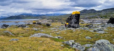 Min senaste (och sista) fjällvandring var i juli 2019. En bild från den, 24 juli, finns som omslagsbild på min facebooksida. Den här bilden är tagen dagen innan, på Hardangervidda. Jag hade mailat till Finsehytta för att försäkra mig om att broarna var utlagda. Det här var inte riktigt vad jag väntade mig ...