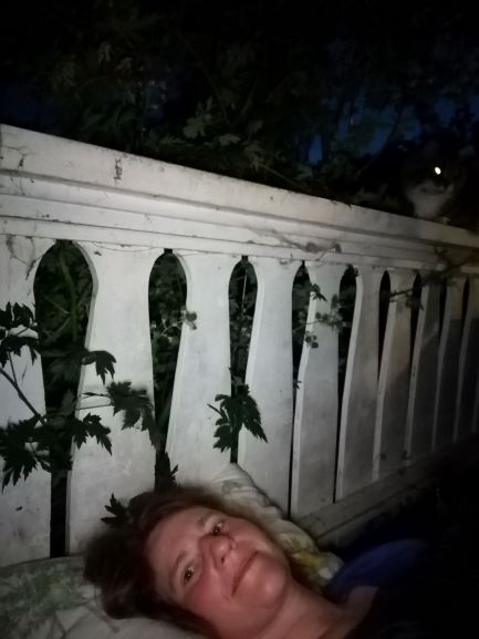 Augusti, fuskade litet och sov på altanen. Det var skönt i värmen. Men jag önskar att jag kan planera mer riktiga turer resten av året. Här är mitt krypin under björnbärsbusken.