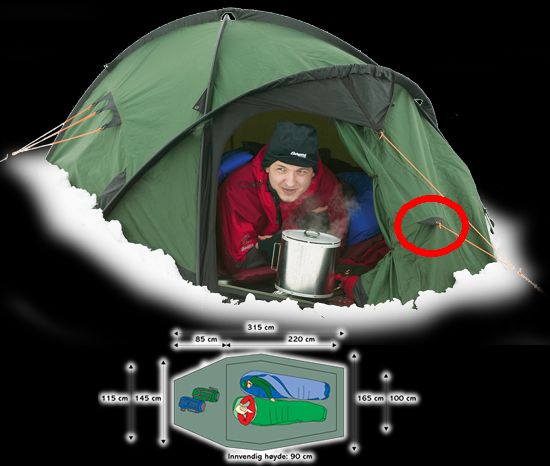 Problemet är att jag "saknar" en lina för att spänna upp absiden. Jag bifogar en bild på hur det ser ut på tältet med inringat vilket fäste mitt tält saknar.