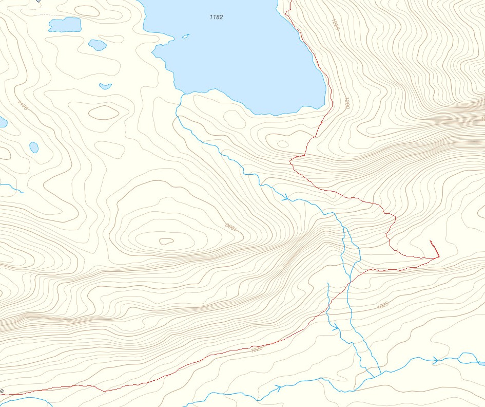 Jag har gått förbi där två gånger. Uppe runt sjön och på norra sidan av ryggen kan man gå lite som man vill. Söderut så går man öster om jokken så kommer man upp eller ner utan problem - ganska självklart hur när man väl är på plats. Det går bra att tälta uppe vid sjön, om man gillar det karga landskapet.