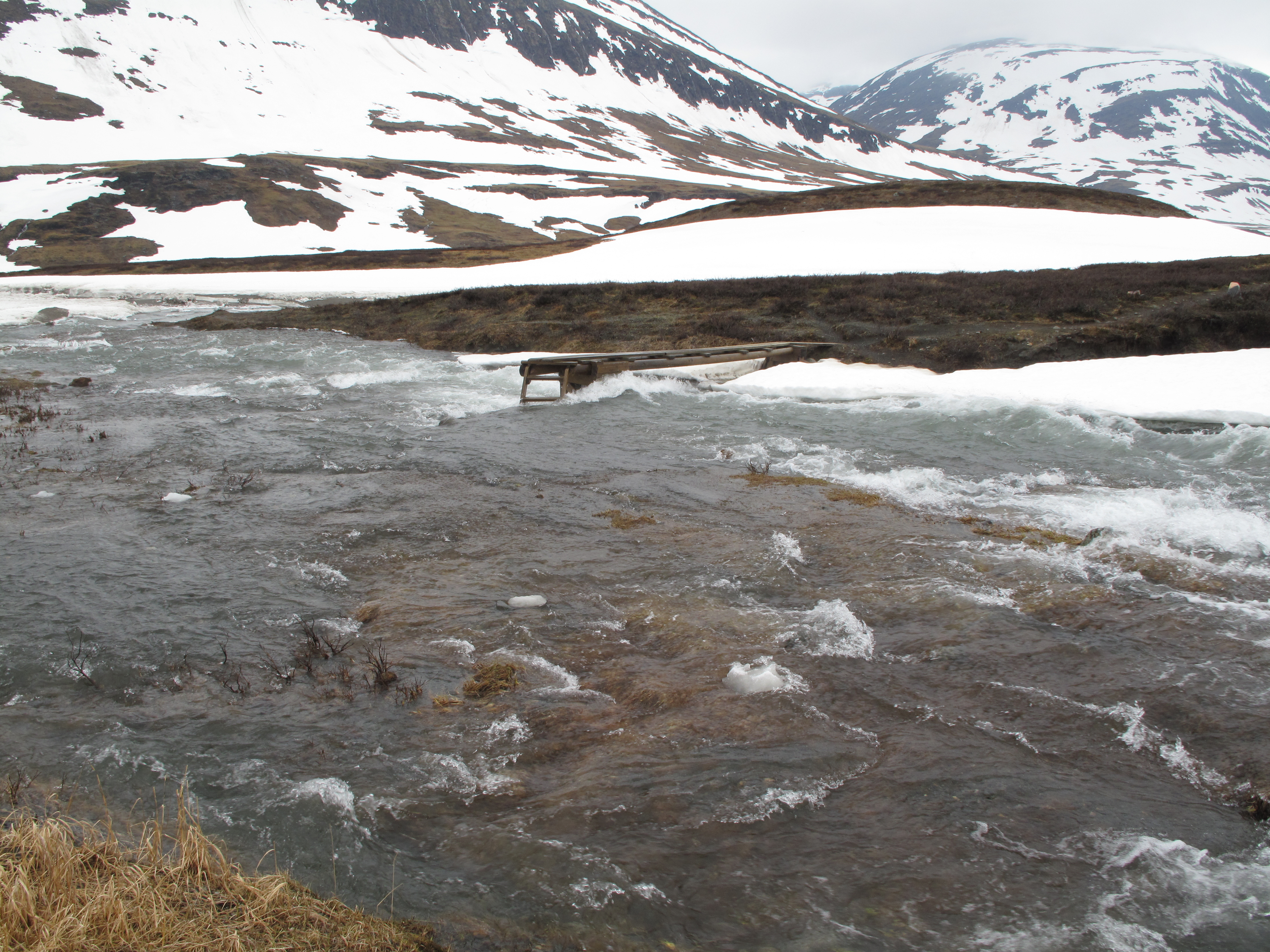 Rätt! Om jag minns rätt så var det den nordligaste av armarna. Vi är alltså på Kungsleden i Tjäktjavaggi. Numera finns det en hängbro över jokken, 23 m lång. Nästa bild, var så god!