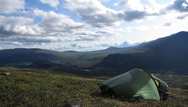 Älven som ringlar sig bortåt horisonten är Sitoädno, och jag tror att tältet står på Namadis, den lilla knallen vid Rinim.