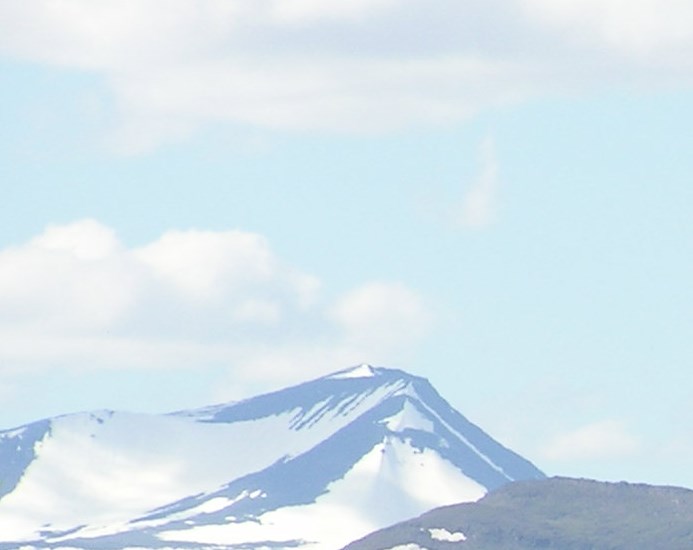 Ryfjälltjärnen fotad en liten bit upp på sluttningen mot toppen? Tycker iaf tjärnen stämmer väldigt bra med form samt den branta höjden vid sjöns bortre sida, och betydligt lägre terrräng i omgivningarna.