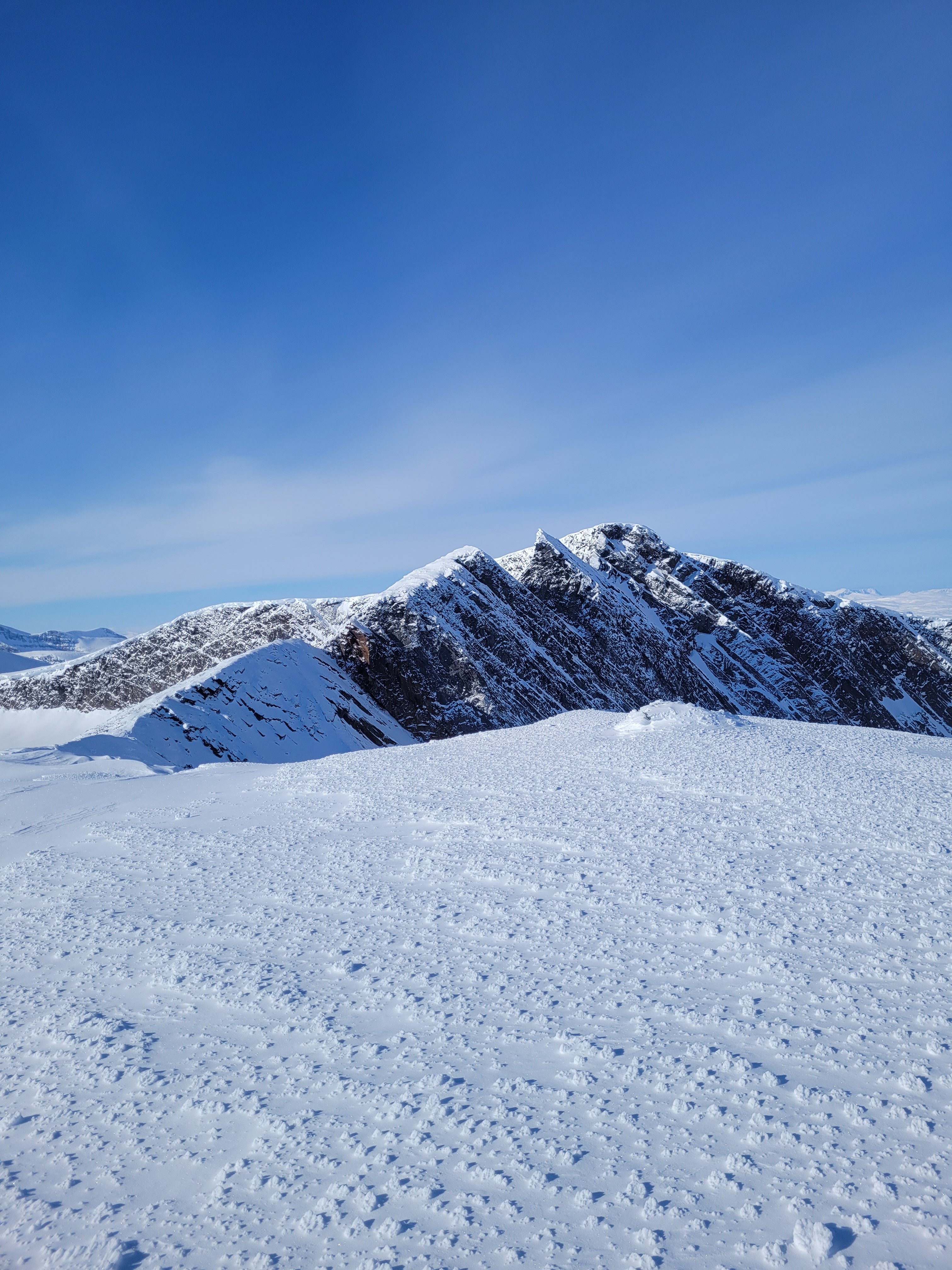 Nu står du uppe på en av de fd. försvarsanläggningarna från WW2, ca 577 söder om Abiskojaurestugorna, och tittar sydväst i riktning mot Unna Allakasstugorna (även de med koppling till WW2).