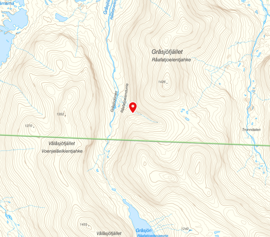 Bra chansning, för det stämmer precis. Det är lite blockterräng direkt till söder vid sluttningen. Men inte mycket. Uppe på topparna kanske det är det, men jag gick bara igenom passet, upp till de små tjärnarna, och nordost ner i tronndalen. Ingen blockterräng alls den vägen och väldigt lättgånget. Utsikten genom gråsjödörren är väldigt vacker där bilden är tagen, och det finns utmärkta tältplatser där.Jag funderade förut på om det kunde vara här men har fått för mig att området består av mer blockterräng, men chansar ändå.