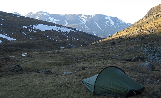Då måste det nästan vara Geargevággi precis söder om Tjäktjapasset? Jokken in där ringlar med rätt krökar och det kommer en sidobäck från den lilla sjön uppe på Alip Suoricohkka som då syns på bilden långt upp till vänster.
