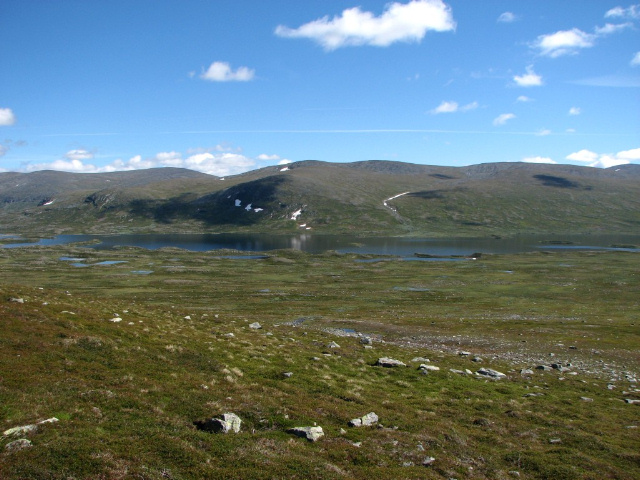 Årjep Sávllo rakt fram med toppen någonstans i skarven, Iggesjávrre till vänster, en bit av Mávasjávrre mitt i den andra bilden och Bieskehávrre längst ut till höger, med glaciärerna på Sulidälbmá i bakgrunden.