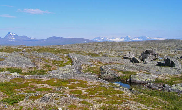 Tack för den rapporten med bild! Det är väl bara att inse att ska man hinna med alla turer som man vill göra i den takt som man planerar nya så behöver man nog vara ute minst 7- 8 veckor per sommarsäsong (vilket tyvärr inte är riktigt realistiskt av flera anledningar...) Men någon gång kommer jag säkert att besöka även dessa trakter.Vi utgick från Guoletisjavrre vid Silvervägen och följde leden förbi Iggesjavrre. Efter ungefär en halvmil norr om Iggesjavrre lämnade vi leden och följde höjdplatån mot Miehkak. Hela den platån var block och hällmark, men det var ändå inte eländigt att gå där. Dock tar det ju förstås lite längre tid att gå på sån mark, men omgivningen var obetalbart vacker så det uppvägde allt. Du ser lite i bilderna du gissade på hur det ser ut i östra änden på platån, bifogar en bild från västra änden, vid Rädniltjavrre.