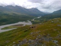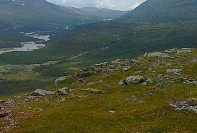 Svår bild, kan ju vara lite var som helst, tycker jag. Men gissa måste man ju. Kanske är du i Sarvesvágge och ser mynningen av Niejdariehpvágge till vänster?