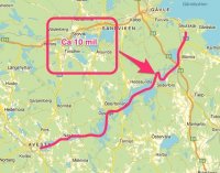 Sträckan är ca tio mil, men jag har aldrig paddlat förut så jag har ingen aning om hur lång tid det kan ta. Jag går ju med packning ca 2,5 till 3 km/timme. Men med kajak lär man ta sig fram något snabbare.