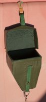 Nu är väskan klar och ska provandras i veckan. Jag hänger den i vänstra axelremmen på ryggan. Den undre karbinhaken fäster också i vänstra axelremmen för att kameran inte ska fladdra runt. Nu är det bara att hoppas att jag tänkt rätt.