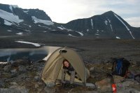 Mitt första "solotält" ett Fjällmark Jeke2 som jag för övrigt hittade på Friluftsvaror.se (de har "lånat" ett foto jag tog 2014) inkl. tarpen. Roligt på ett sätt att de publicerar en bild man själv tagit när man varit ute.