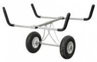 Jag har den vänstra av dessa vagnar. Mycket stabil, hjulen givetvis avtagbara, vaggan kan vridas så den blir parallell med hjulaxeln vid transport. Har kört min Pouch RZ (2-mans faltkajak) med full packning i på skogsväg kilometervis utan tillstymmelse till bekymmer. Dock är stödbenet inte optimal konstruktion men jag anser inte att det behövs så jag har tagit bort det ändå. Vagnen är i övrigt mycket välgjord - men tyvärr troligen dyrare än Julas, tror den kostar cirka 1300:- i dag