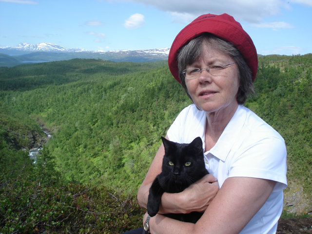 Jag måste få visa den ärade läsekretsen denna bild. Den kanske blir klassisk eftersom det är första gången som en katt blir dokumenterad på fjällvandring. Morgan gjorde bara två övernattningar, eftersom vi fick vända under Murtsertoppen på grund av sammanhängande snöfält bort mot slutmålet - Tärnaglaciären. Första natten tillbringade katten i fjällbjörkskogen intill Drottningleden ovanför Hemavan. Silvia hade då redan invigt sin vandringsled, men jag hade gärna sett drottningens minspel om Morgan dykt upp i närheten. Hur hade säkerhetsvakterna reagerat om katten kommit för nära?