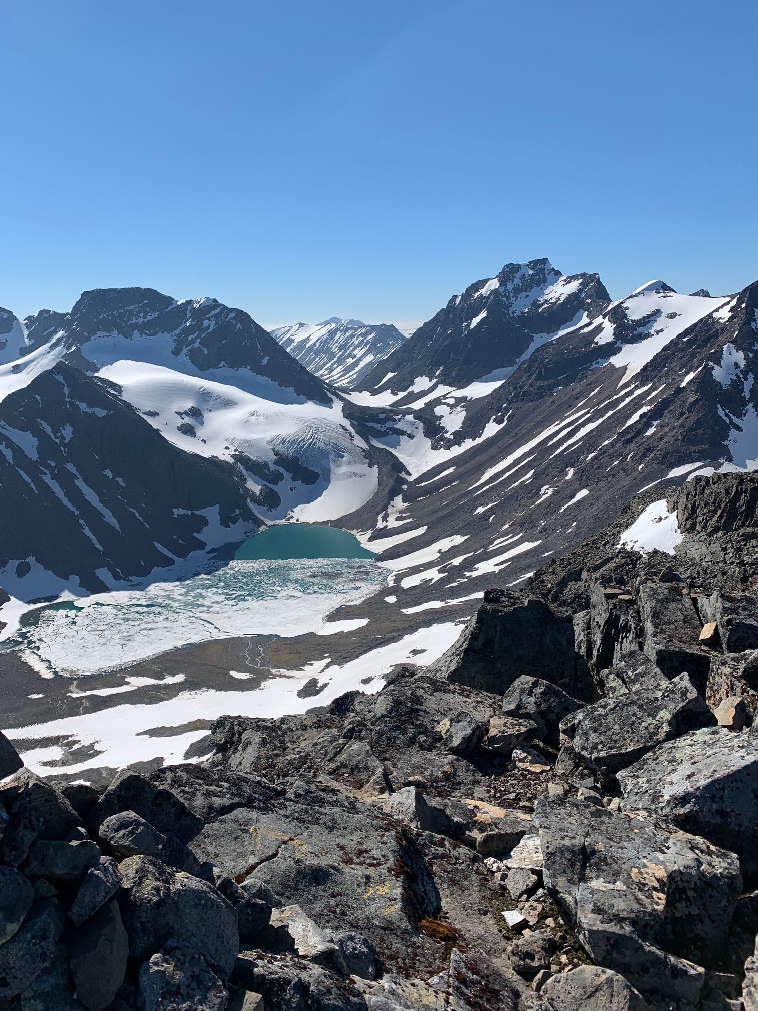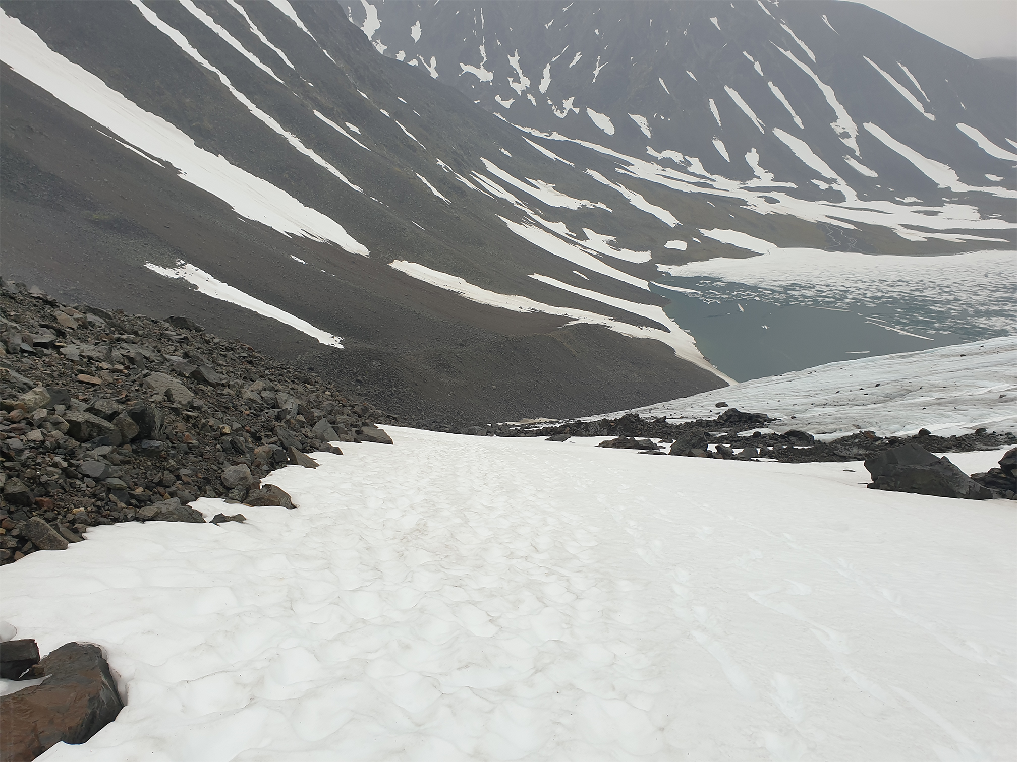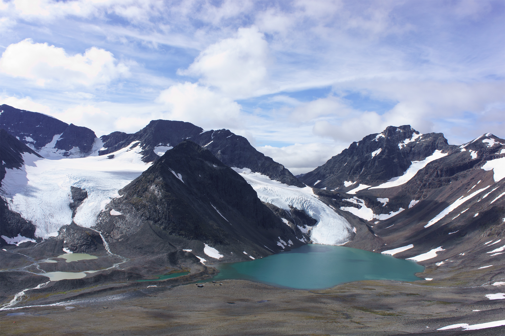 Angående nedgången till Tarfala beror det mycket på om det finns snö eller ej på glaciären t.e.x. i juli 2020 var det lätt att ta sig ner. Vet någon hur det ser ut i år?