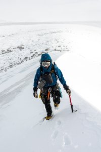 Jag har inte vart upp på keb. Men antar att det är liknande som att gå från liftstationen på aig du midi sommartid. Guiderna går med rep där. Personligen föredrar jag utan, då är det ju iallafall inte samma risk att bli nerdragen av nån annan.