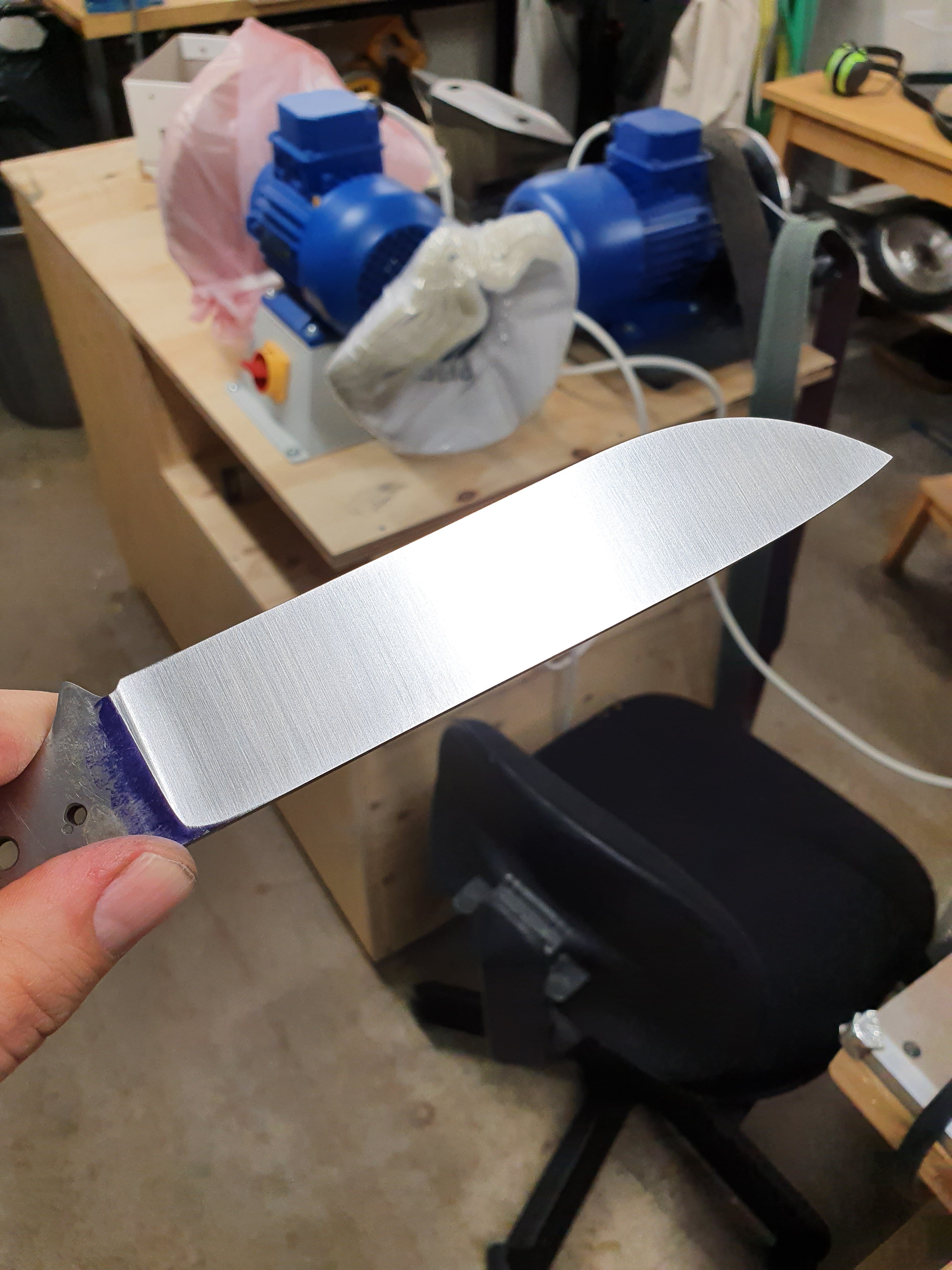 Kul du levererar henjon. Här görs det inte så många knop just nu, av lite olika skäl. Håller på med en 15 cm bladare i A8 mod. Slipad konvex till 0.5 mm. Blir rätt grov mao. Nästa steg är skaft. Tänkte testa corby nitar för första gången..