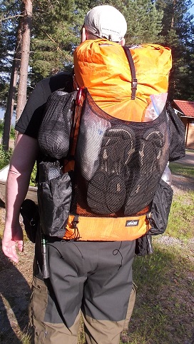 Det var med förväntan jag ett par timmar senare hängde på mig ryggsäcken och för första gången fick känna på den. Den är lätt och smidig, enkel att sätta på och alla remmar är lättillgängliga. Två saker har jag reagerat på än så länge, den första är att de nedre sidofickorna, som jag har en vattenflaska i, sitter lite väl krångligt till för att jag enkelt ska kunna plocka fram vattnet samt få tillbaka flaskan på plats efteråt. Nu är det ju inte världens största anstängning att hänga av den ena axelremmen för att nå bättre, men fickans utformning kunde vara lite mer smidig (i alla för mig). Den andra är att axelremmarna upplever jag som styva (jämfört med Ospreysäcken), det var så illa att jag fick begränsad rörelseförmåga i vissa vinklar. Kanske axelremmarna mjukas upp med tiden.
