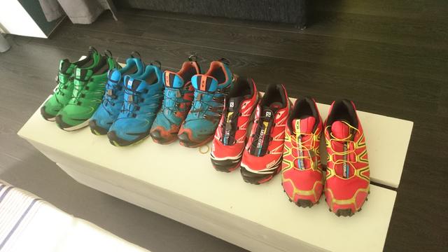 Sen har jag vanliga salomon löpdojor....ett par me grovt mönster för terräng ett halvgrovt som jag även används på asfalt ..