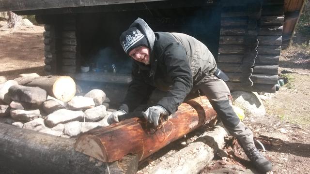 Team Uteliggarna renoverar vindskyddsbänken vid Stora Härsjön